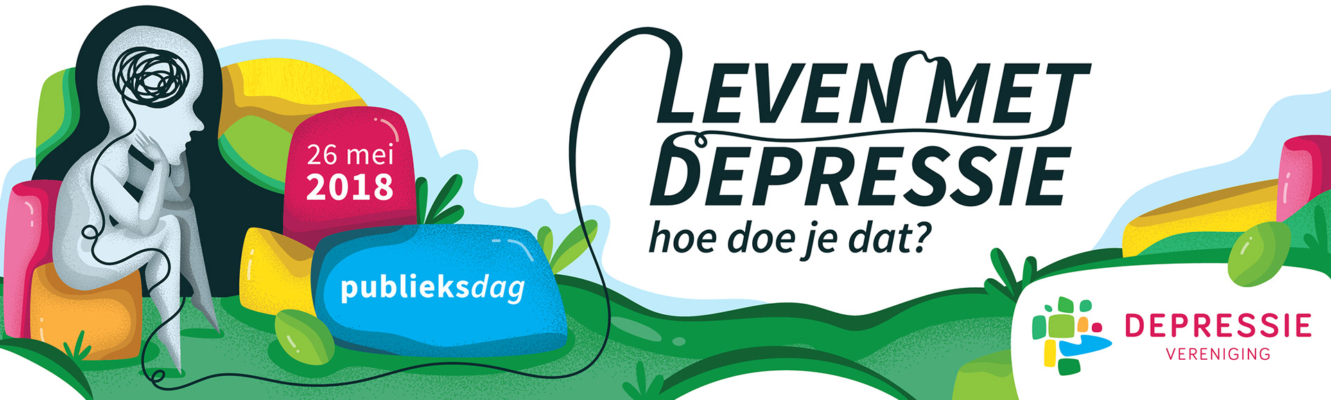 Promotie materiaal voor de landelijke publieksdag van de Depressie Vereniging.